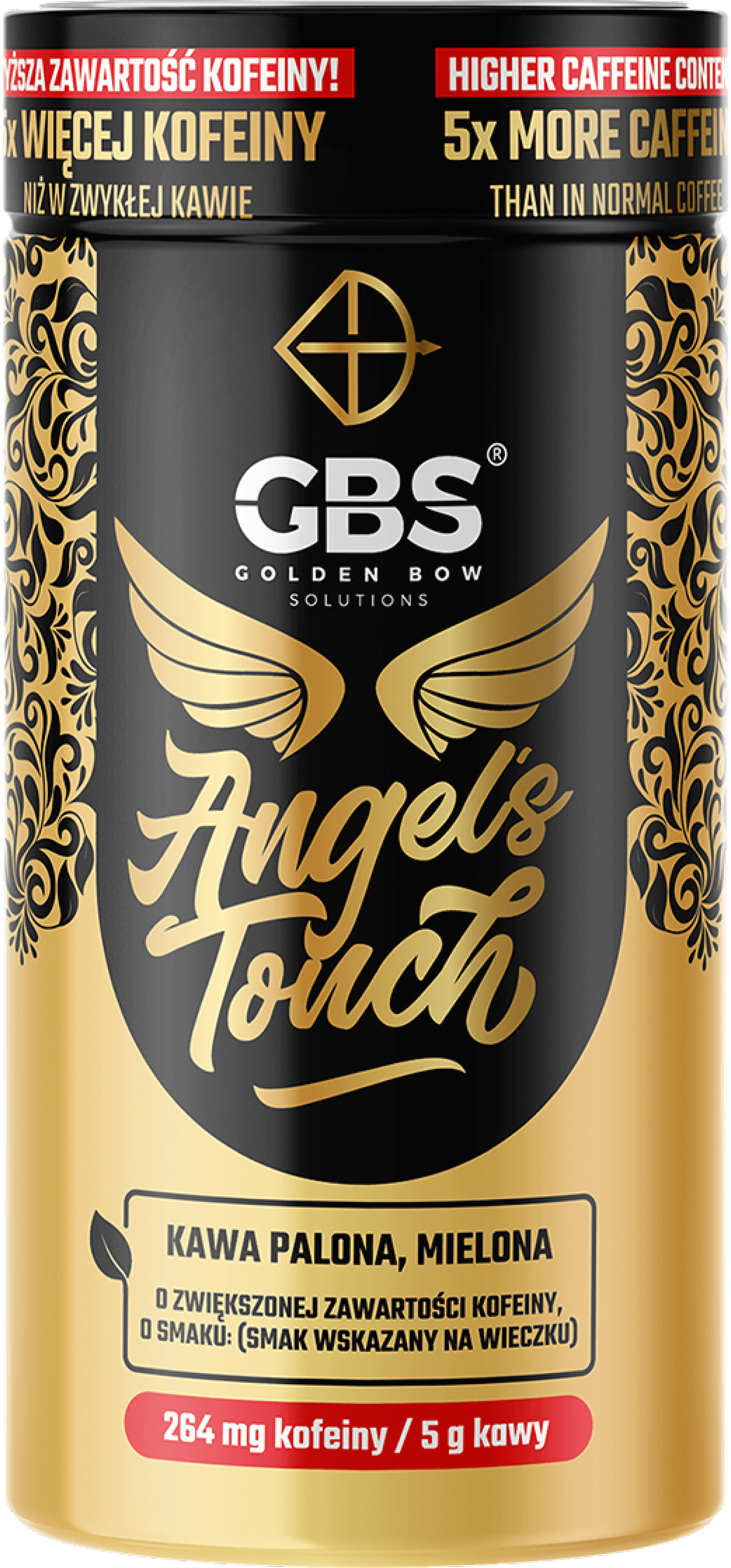 Angel’s Touch w wersji mielonej to bardzo drobno zmielone ziarna kawy (100% Arabica) z wysoką zawartością kofeiny. Porcja zawiera aż 264 mg kofeiny – równowartość 5 zwykłych kaw. Nie zawiera kalorii, cukru ani substancji słodzących.